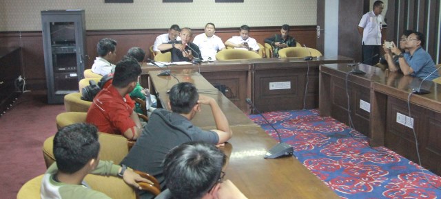 8 orang yang tergabung dalam Aliansi Mahasiswa Peludi Kaltim menyampaikan aspirasi yang diterima Anggota Komisi III DPRD Kaltim M Samsun, Rabu (22/3).