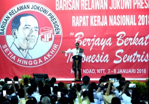 Presiden Jokowi memberikan arahan pada Rakornas Bara JP 2018, di Pulau Rote, NTT, Senin (8/1) sore. (Foto: Rahmat/Humas)