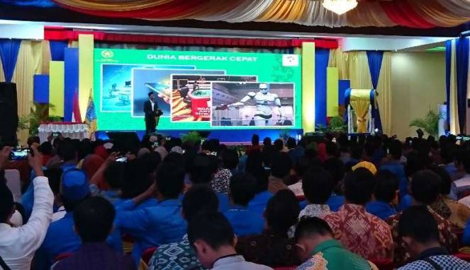 “PMII arahkan energi itu ke gagasan besar, gagasan ekonomi untuk sejahteranya bangsa ini. Pesan khusus kepada PMII, jangan hanya bermimpi untuk jadi politisi, bermimpilah misalnya jadi wiraswasta, kita baru 1,6 persen. Normalnya sebuah negara yang baik di atas tiga persen,” kata Jokowi.