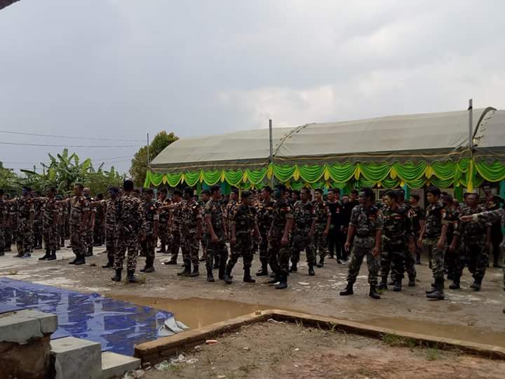 Di salah satu pos pemberhentian, Guru Suhaimi Suriyah Nahdlatul Ulama Kabupaten Kutai Timur memberikan arahan dan nasehat tentang Ahlussunnah Wal Jamaah an nahdliyah kepada peserta pembaretan Banser Kutai Timur. (Nala)