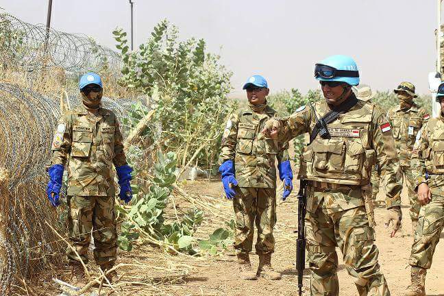 Satuan Tugas (Satgas) Batalyon Komposit Konga XXXV-C/Unamid (United Nations Mission In Darfur) atau Indonesian Battalion (Indobatt) 03 yang dipimpin Komandan Satgas (Dansatgas) Letkol Inf Syamsul Alam, S.E melaksanakan patroli keliling pagar perbatasan camp garuda dalam rangka kegiatan operasional Satgas Indobatt-03 di Super Camp, El Geneina, Sudan-Afrika, Rabu (10/5/2017).
