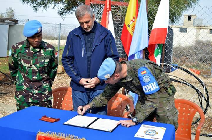 Komandan Satgas Indonesian Battalion (Dansatgas Indobatt) Batalyon Mekanis Konga XXIII-L/Unifil (United Nations Interim Force In Lebanon) misi perdamaian PBB di Lebanon Selatan, Letkol Inf Arfan Johan Wihananto, S.I.P. didampingi Perwira Staf terkait, menghadiri peresmian Generator Tenaga Diesel di Distrik Deir Seriane, Lebanon Selatan, Rabu (10/1/2018).