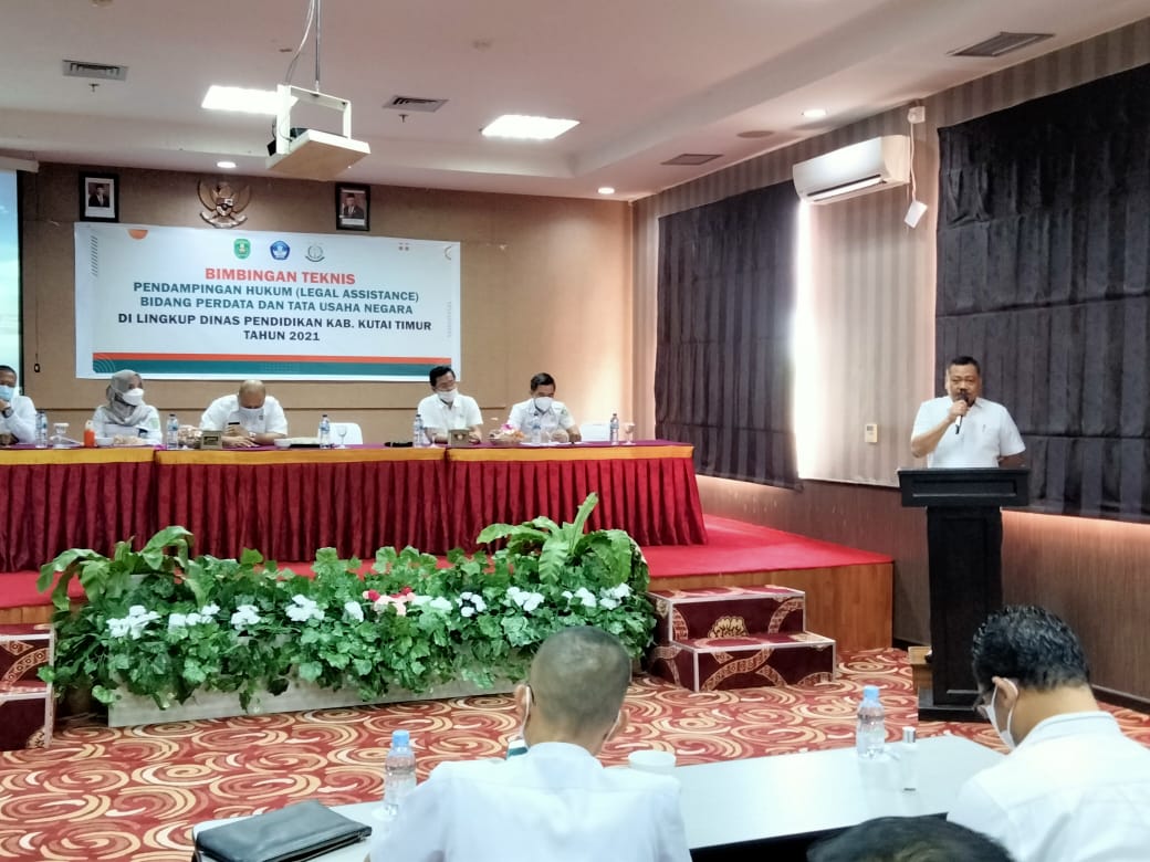 HARIANKUTIM.COM, Sangatta – Dinas Pendidikan Kabupaten Kutai Timur melaksanakan pendampingan Hukum (Legal Asistance) Bidang Perdata dan Tata Usaha Negara bagi unsur atau komponen penyelenggara kegiatan atau pekerjaan di lingkup Dinas Pendidikan, yang bertempat di Hotel Royal Victoria, Rabu (01/12/21).