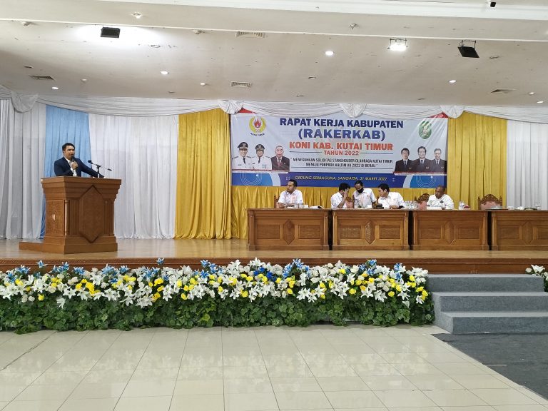 HARIANKUTIM.COM, Sangatta – Komite Olahraga Nasional Indonesia (KONI) Kutim menggelar Rapat Kerja Kabupaten (Rakerkab) di Ruang Akasia Gedung Serba Guna Kompleks Perkantoran Bukit Pelangi, Kamis (31/03/2022).