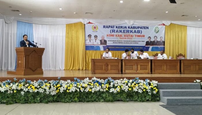 HARIANKUTIM.COM, Sangatta – Komite Olahraga Nasional Indonesia (KONI) Kutim menggelar Rapat Kerja Kabupaten (Rakerkab) di Ruang Akasia Gedung Serba Guna Kompleks Perkantoran Bukit Pelangi, Kamis (31/03/2022).