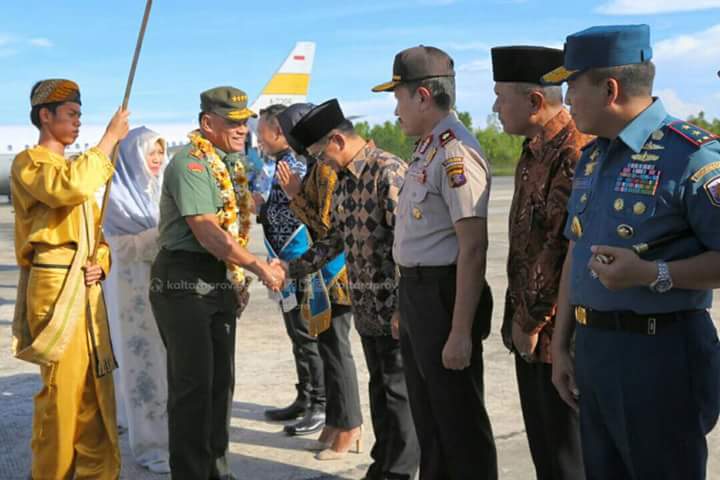 Gubernur Kaltara Irianto Lambrie menyambut kedatangan Menteri Pertahanan RI, Bapak Ryamizard Ryacudu dan Panglima TNI Bapak Jenderal TNI Gatot Nurmantyo di Lanud Tarakan, Minggu (18/06/2017) sore tadi.