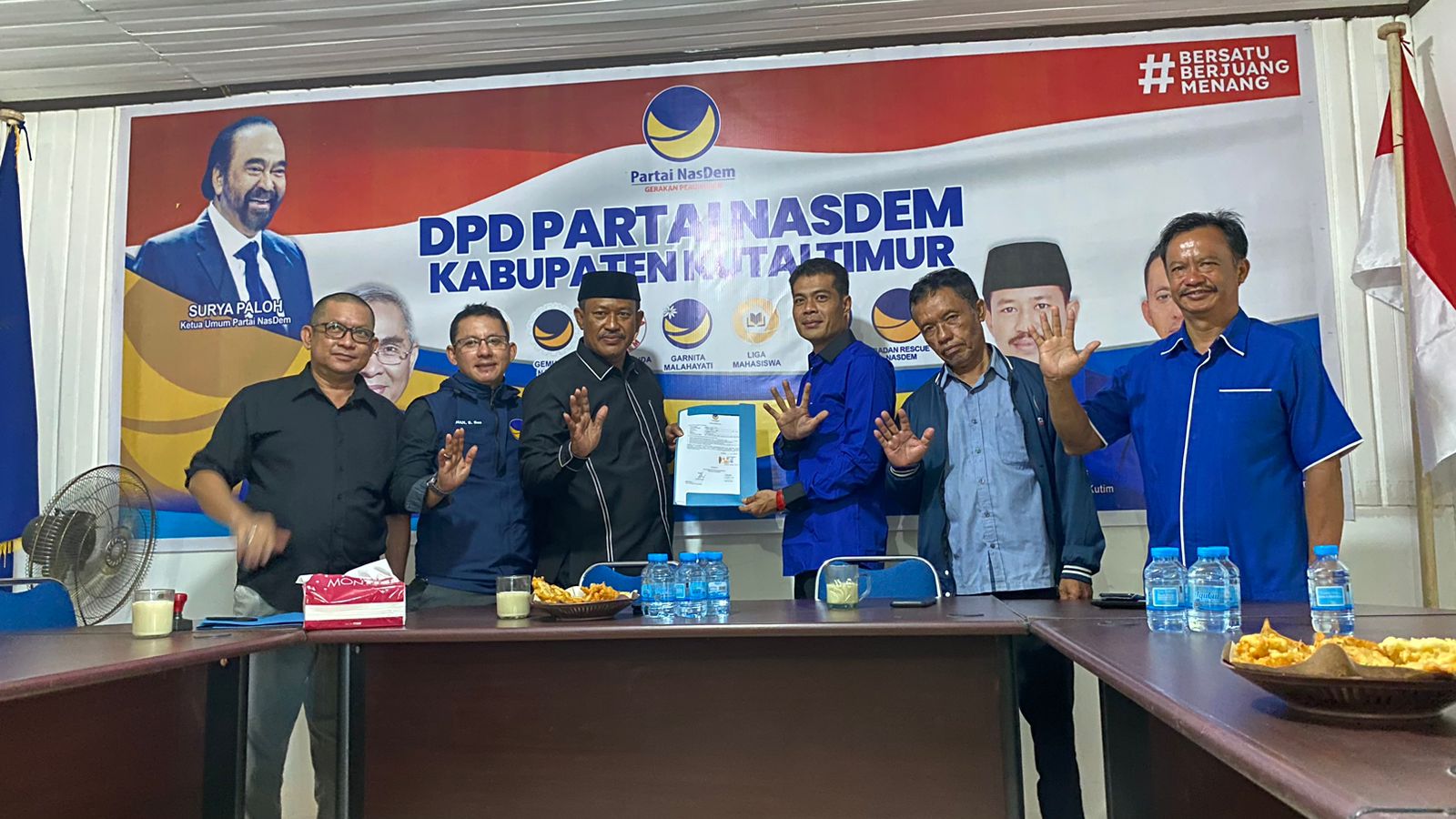 Hendra Hapri Hardi menyerahkan berkas pendaftaran Bacaleg kepada Bapak Arfan, SE selaku Ketua DPD Nasdem Kutai Timur