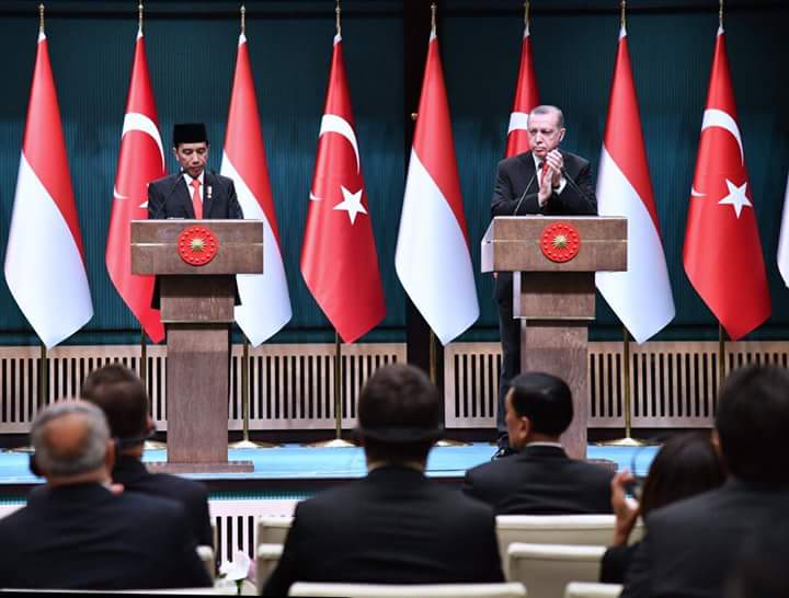 “Kita telah sepakat berupaya mengembalikan tren positif perdagangan dan investasi antara lain melalui negosiasi Indonesia-Turkey Comprehensive Economic Partnership Agreement (IT-CEPA). Kemudian pengurangan atau pengakhiran hambatan perdagangan dan penciptaan iklim investasi yang kondusif,” ujar Presiden Joko Widodo saat memberikan pernyataan pers bersama.