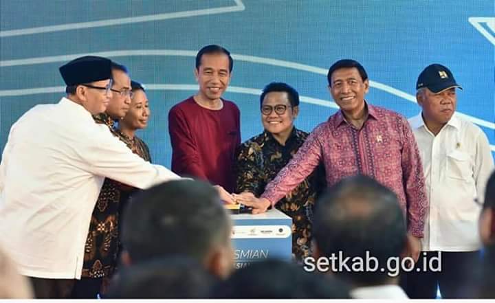 Presiden Jokowi didampingi Ketua Umum DPP PKB Muhaimin Iskandar saat Meresmikan Stasiun Kereta Bandara Soekarno Hatta, Tangerang, Banten, Selasa (2/1) siang. (Foto: JAY/Humas)