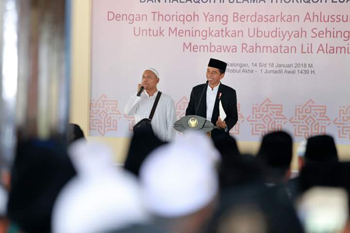 Presiden saat menghadiri pembukaan Muktamar XII JATMAN, di Pendopo Kabupaten Pekalongan, Jawa Tengah, Senin (15/1) siang.