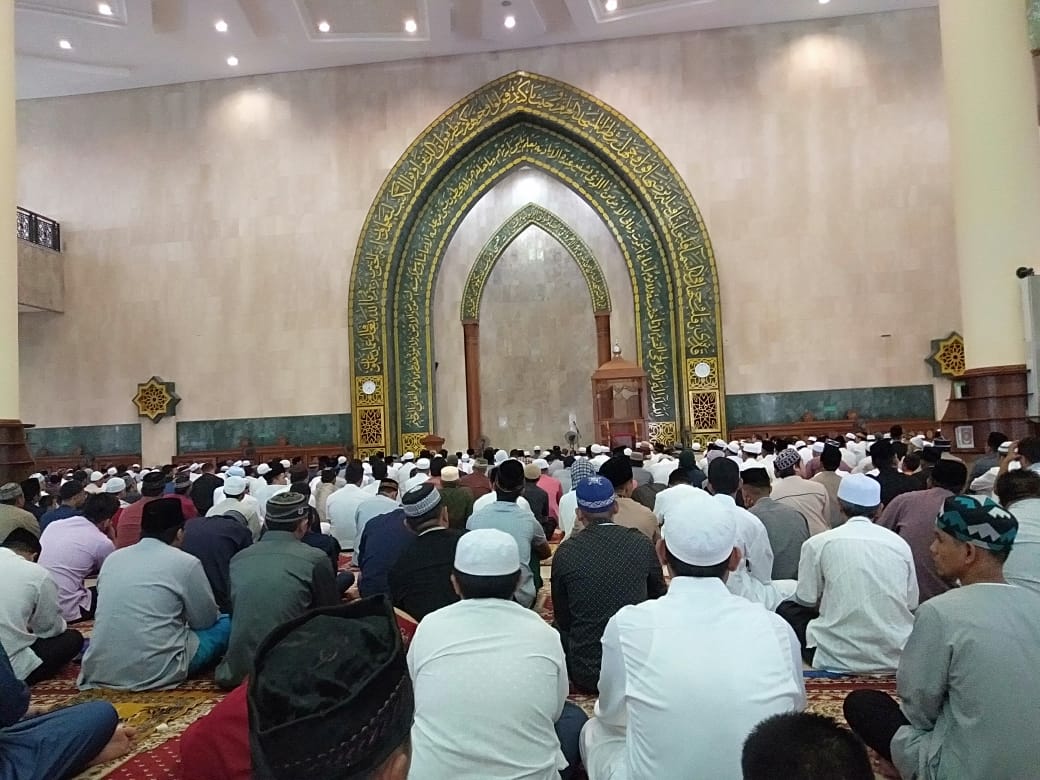 Demikian juga terlihat di Masjid Agung Al-Faruq Bukit Pelangi Sangatta Kutai Timur. Ribuan umat muslim memadati areal masjid sejak pukul 06.00 Wita. (11/08/19)