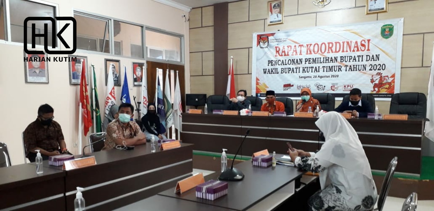 HARIANKUTIM.COM, Sangatta – Persiapan Pendaftaran Calon, Komisi Pemilihan Umum KPU Kutai Timur melaksanakan Rapat Koordinasi Pencalonan Pemilihan Bupati dan Wakil Bupati Kutim Tahun 2020, Jum’at (28/8/20).