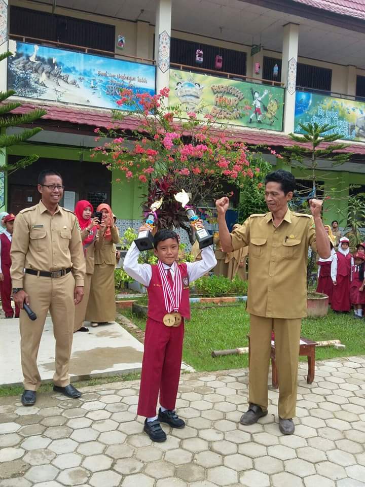 Sangatta, hariankutim.com – Pasca upacara bendera hari Senin (3/4) di SDN 001 Sangatta Utara pagi tadi, M. Rizki Arjuna Ridwansyah memaerkan piala kepada teman-teman sekolahnya.