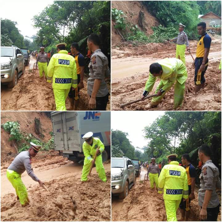 “Usai dilakukan upaya bersama anggota dan masyarakat secara manual pada pukul 07.15 Wib, arus lalu lintas sudah bisa dilalui dengan sistem buka tutup. Tim gabungan kemudian melakukan pembersihan dengan alat berat untuk upaya pembuangan materil longsor secara maksimal,” imbuhnya.