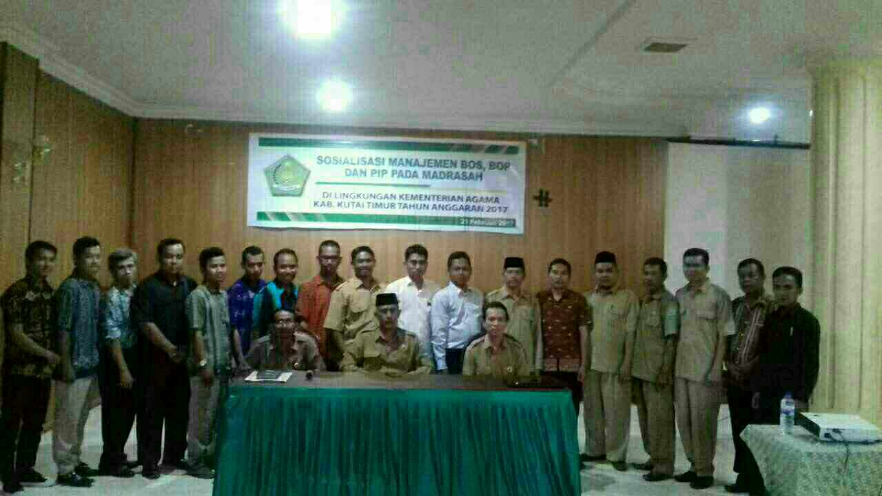 Sangatta – Selasa 21 Februari 2017 bertempat di hotel Kutai Permai kementerian agama melaksanakan kegiatan bimbingan teknis manajemen BOS untuk madrasah. Peserta sosialisasi terdiri dari berbagai jenjang dari RA/MI, MTS, dan MA dengan jumlah peserta keseluruhan sebanyak 44 orang yang berasal dari berbagai wilayah Kabupaten Kutai Timur.