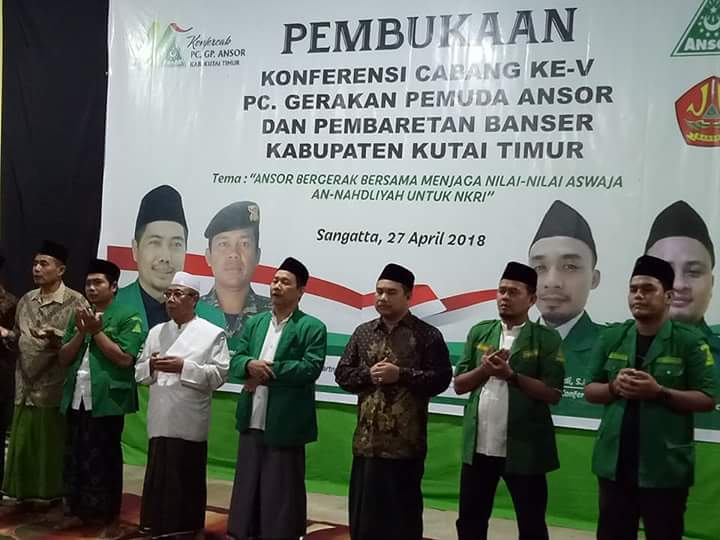 Sangatta – “Ngaji, Ngader, dan Ngakaryo” merupakan tiga kata yang menjadi pesan ketua pimpinan wilayah gerakan Pemuda GP Ansor Kalimantan Timur, M Fajri Al Farabi kepada kader-kader Ansor Banser dalam sambutan pembukaan konferensi cabang V GP Ansor Kutai Timur, Jumat (27/4).