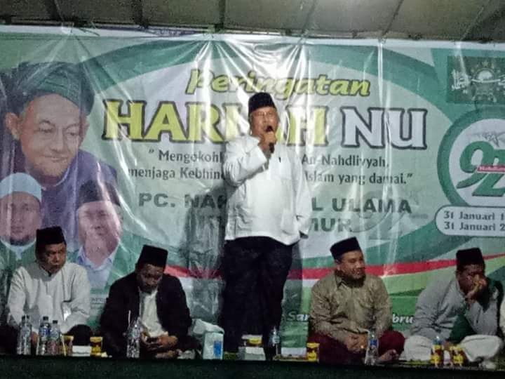 Kegiatan harlah NU ke-92 ditutup dengan mauidlah hasanah dari perwakilan suriah NU Kutim Kiai Imam Muhtadi. (Sismanto HS)