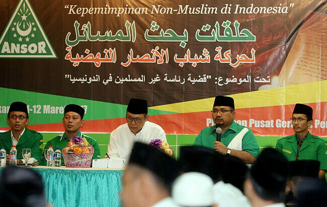 Sehubungan dengan tren kehidupan keagamaan di Indonesia ini yang menunjukkan adanya gejala yang semakin intoleran dan menafikan kelompok lain, kami Pimpinan Pusat Gerakan Pemuda Ansor merasa perlu untuk membahas tema kepemimpinan non-Muslim di