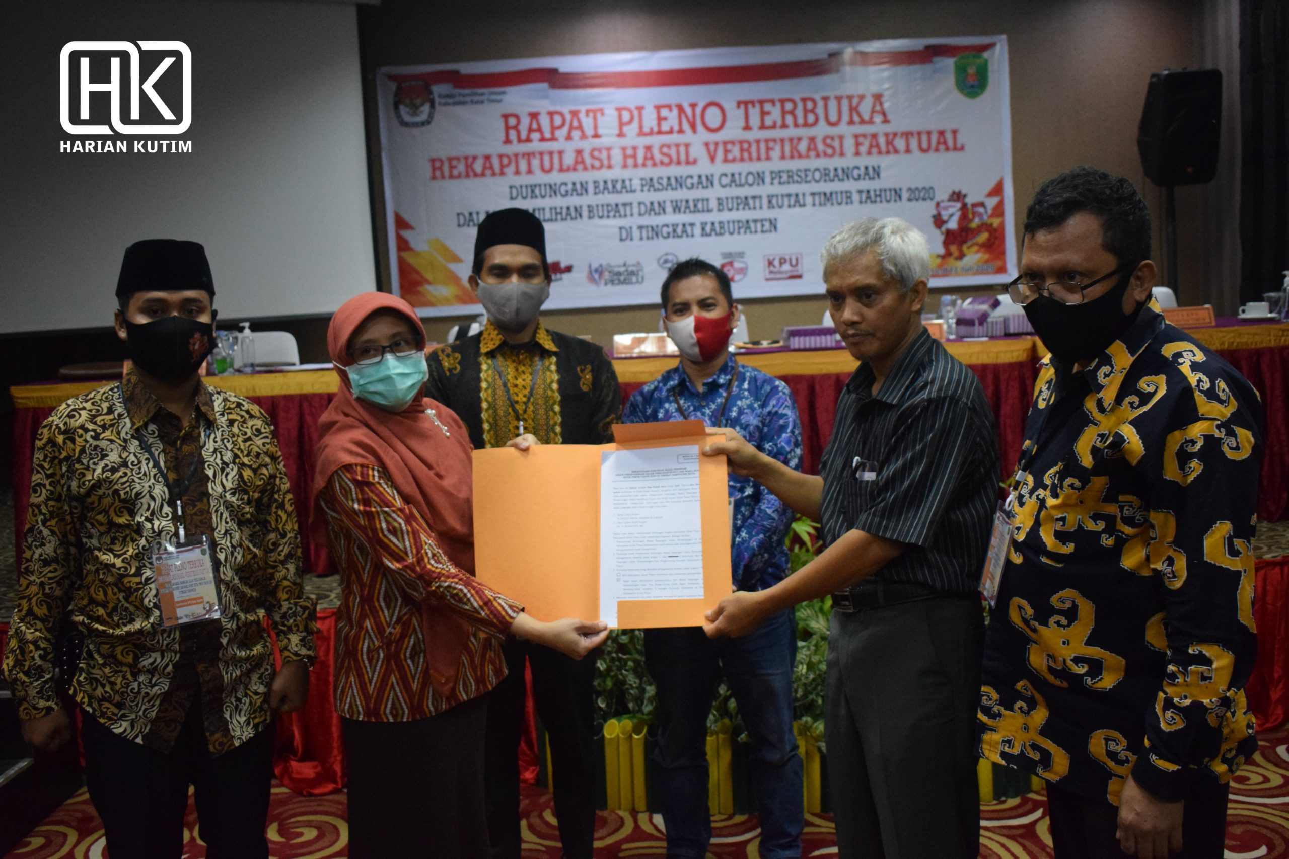 Berdasarkan hasil rekapitulasi hasil verifikasi faktual yang dilakukan oleh KPU Kutai Timur jumlah pendukung Bakal Pasangan Calon (bapaslon) Perseorangan yang dinyatakan memenuhi syarat adalah sebanyak 12.701 orang. Artinya dari jumlah total dukungan yang diajukan oleh bapaslon pasca verifikasi administrasi yaitu sebanyak 23.207 orang, dan sebanyak 10.032 0rang dinyatakan tidak memenuhi syarat (TMS).