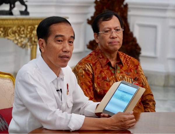 Presiden saat melaporkan SPT PPh Wajib Pajak Orang Pribadi Tahun 2017 secara elektronik di Istana Merdeka, Jakarta, Senin (26/2). (Foto: BPMI).
