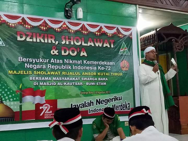 Sangatta, Majelis sholawat Rijalul Ansor Gerakan Pemuda Kutai Timur menggelar dzikir, sholawat, dan doa bersama masyarakat Swarga Bara di Masjid Al Kautsar Bumi Etam, Rabu (16/8/2017).