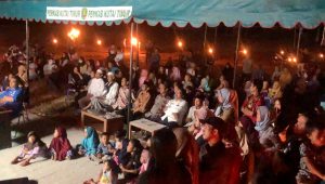 Isak tangis haru mulai terdengar disela cahaya obor yg menyinari panggung, slide Poto para Pendahulu Teluk pandan menambah keheningan Malam itu.