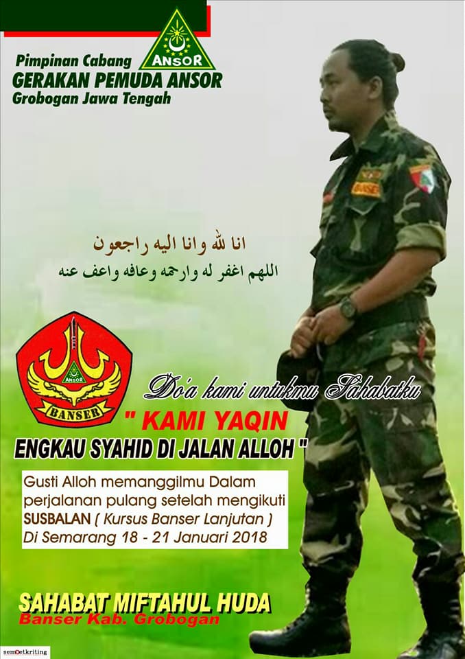 Miftahul Huda, anggota Banser yang meninggal dalam kecelakaan di Tol Banyumanik. (MuriaNewsCom/Dani Agus)