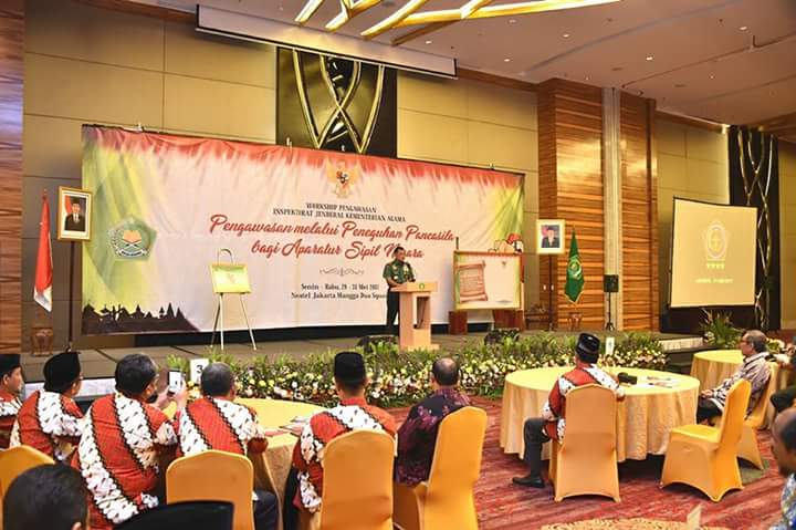 Demikian disampaikan Jenderal TNI Gatot Nurmantyo saat memberikan pengarahan kepada Aparatur Sipil Negara (ASN) Inspektorat Jenderal Kementerian Agama dalam Workshop yang mengambil tema “Peneguhan Pancasila Bagi Aparatur Sipil Negara”, di Hotel Novotel Mangga Dua, Jakarta Utara, Rabu (31/5/2017).