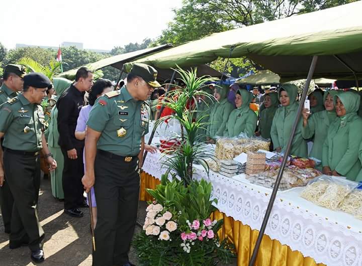 Panglima TNI Jenderal TNI Gatot Nurmantyo secara resmi membuka bazar (pasar murah) dalam rangka membantu meringankan kebutuhan Prajurit dan PNS TNI menjelang Hari Raya Idul Fitri 1438 H, bertempat di Lapangan GOR Ahmad Yani, Mabes TNI Cilangkap Jakarta Timur, Rabu (21/6/2017).