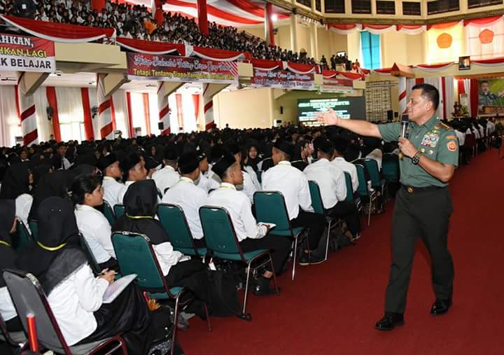 Hal tersebut disampaikan Panglima TNI Jenderal TNI Gatot Nurmantyo pada saat memberikan Kuliah Umum kepada 4.700 Mahasiswa/Mahasiswi Universitas Jambi dengan tema “Tantangan dan Peluang Menjadi Bangsa Pemenang Dalam Kompetisi Global”, di Gedung Balairung Universitas Jambi, Kampus Pinang Masak Mandalo Indah, Provinsi Jambi, Selasa (8/8/2017).
