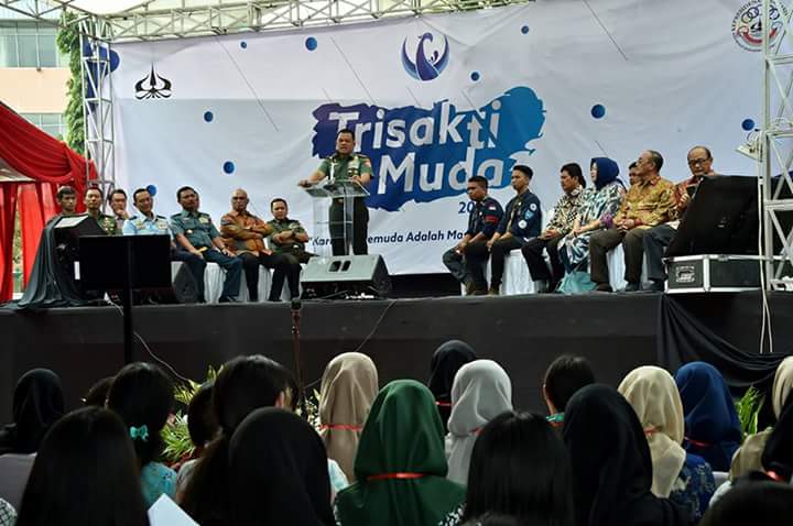 Hal tersebut disampaikan Panglima TNI Jenderal TNI Gatot Nurmantyo saat memberikan Kuliah Umum dengan tema “Tantangan dan Peluang Menjadi Bangsa Pemenang Dalam Kompetisi Global”, dihadapan 2.800 Mahasiswa Universitas Trisakti, pada acara Peresmian Mahasiswa Baru dan Aksi Muda Trisaksi 2017, bertempat di Kampus Trisakti Jl. Kyai Tapa No.1, Grogol, Jakarta Barat, Minggu (20/8/2017).