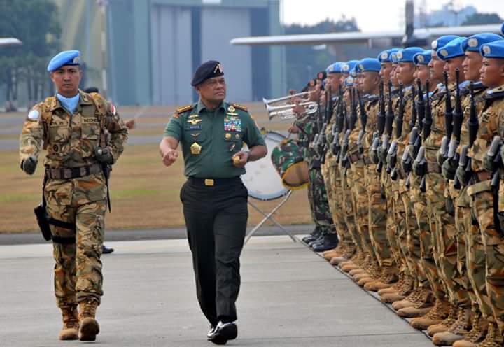 Pasukan Garuda dalam misi PBB menjaga perdamaian dunia merupakan tugas yang luhur dan mulia, sekaligus membanggakan. Demikian disampaikan Panglima TNI Jenderal TNI Gatot Nurmantyo pada saat Upacara Penerimaan Purna Tugas Satgas Kompi Zeni TNI Kontingen Garuda (Konga) XXXVII-C/MINUSCA CAR (Center Africa Republic), di Taxi Way Echo Lanud Halim Perdana Kusuma, Jakarta Timur, Rabu (6/9/2017).