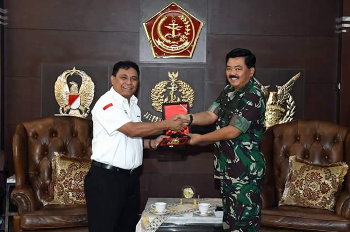 Panglima TNI Marsekal TNI Hadi Tjahjanto, S.I.P. didampingi Asrenum Panglima TNI Laksda TNI Agung Prasetiawan, Aslog Panglima TNI Laksda TNI Bambang Nariyono dan Kapuspen TNI Mayjen TNI MS. Fadhilah menerima kunjungan Direktur Utama (Dirut) PT. Pindad Abraham Mose yang didampingi Direktur Keuangan dan Direktur Bisnis Industrial di Mabes TNI, Cilangkap, Jakarta Timur, Kamis (4/1/2018).