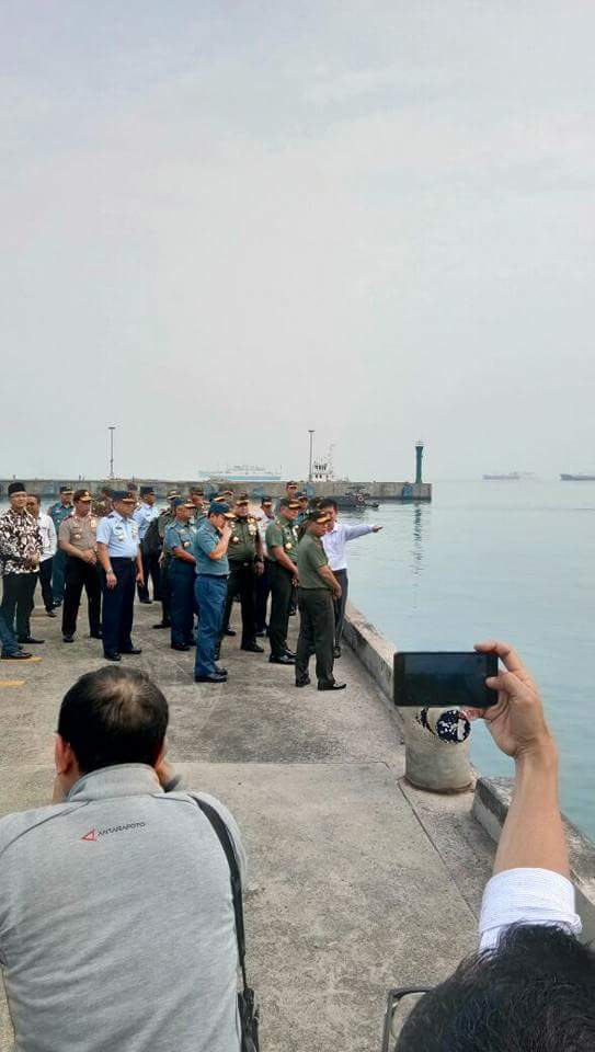 Panglima TNI Jenderal TNI Gatot Nurmantyo  beserta rombongan  dengan menggunakan 2 Helikopter Bell 412 milik TNI, berangkat dari Mabes TNI Cilangkap pukul 08.00 WIB dan tiba di Pelabuhan Indah Kiat Cilegon, Banten sekitar pukul 08.45 WIB.