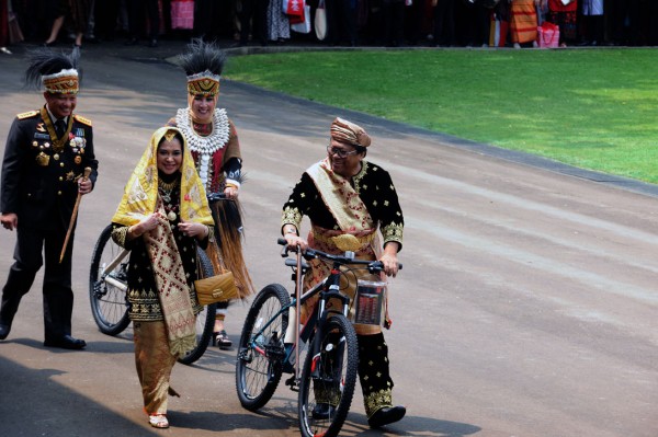 “Ini kehormatan besar buat saya dan istri saya pakai adat Karo, karena dia memang orang Karo. Jadi kami betul-betul mengapresiasi apa yang dibuat oleh Presiden dalam rangka menghargai baju adat daerah. Kebinekaan, itu kekuatan kita,” ujar Yasonna yang seperti halnya Oesman akan memberikan hadiah sepeda ke cucunya.