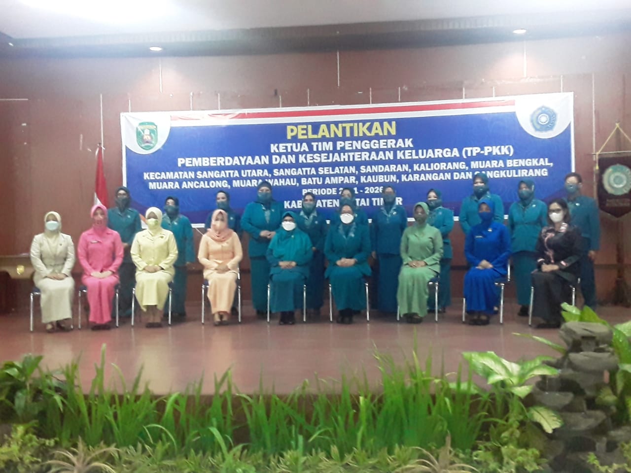 HARIANKUTIM.COM, Sangatta – Sebanyak 11 Kecamatan Ketua Tim Penggerak Pemberdayaan dan Kesejahteraan Keluarga (TP-PKK) resmi di lantik oleh Ketua TP-PKK dan sekaligus Ketua Dewan Kerajinan Nasional Daerah (Dekranasda) Kabupaten Kutai Timur, Ny Hj Siti Robiah Ardiansyah, yang bertempat di Gedung Wanita perkantoran Bukit Pelangi, Jumat (10/12/21).