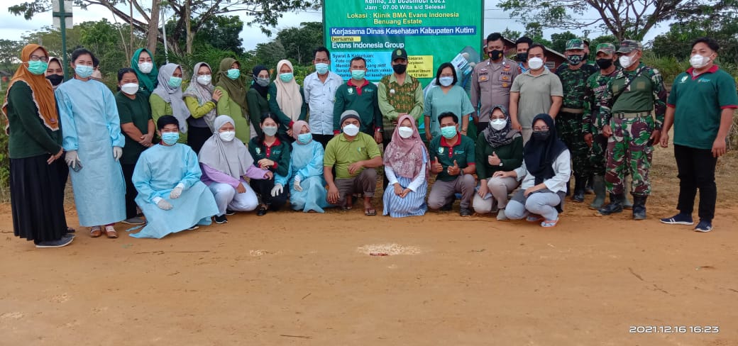 Kali ini vaksinasi dilaksanakan di Perusahaan Perkebunan Kelapa Sawit PT. BMA (BUMI Mas Agro) Kecamatan Sandaran, pada hari Kamis Tanggal 16 Desember 2021 Sekitar pukul 08:00 WITA s/d pukul 18.00 WITA, yang Bertempat di Klinik PT. BMA Evans Indonesia Benuang Estate.