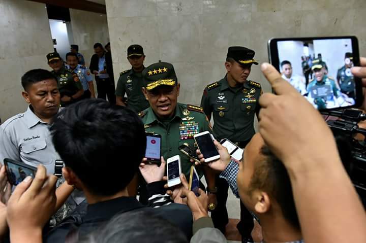 Hal tersebut dikatakanPanglima TNI Jenderal TNI Gatot Nurmantyo dihadapan awak media usai mendampingi Menhan RI Jenderal TNI (Purn) Ryamizard Ryacudu pada Rapat Kerja bersama Komisi I DPR RI terkaitRKA-KL APBN-Perubahan Anggaran Kemhan/TNI Tahun Anggaran 2017, di Ruang Rapat Komisi I DPR RI, Jalan Jenderal Gatot Subroto, Jakarta Selatan,Selasa malam (25/7/2017).