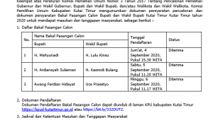 Dokumen Bakal Pangan Calon Bupati dan Wakil Bupati Kutai Timur Tahun 2020. klik dibawah ini…