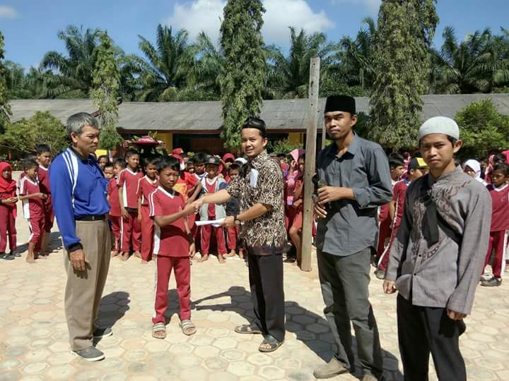 Didampingi oleh S. Ubaidillah el-Fujani (ketua majelis ta’lim Ulul Albab), Kiki Herdiansyah, SE (Bendahara), Udau Dungau, S.Pd (kepala SDN 011), Junaedi, S.Pd. (kepala SDN 002) serta disaksikan oleh siswa-siswi dan dewan guru Juraedi menyerahkan santunan yang berhasil dihimpun dari jama’ah serta bantuan dari Baznas Kab. Kutai Timur.