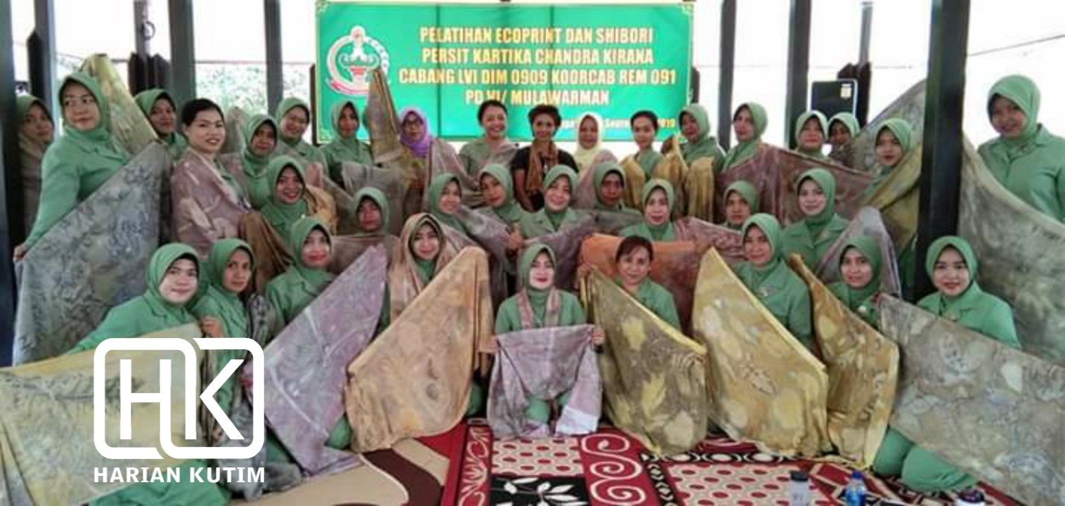 HARIANKUTIM.COM, Sangatta – PERSIT KARTIKA CANDRAKIRANA CABANG VLI KODIM 0909/SGT Melaksanakan Kegiatan Pelatihan ECOPRINT dan SHIBORI. Senin (16/9/2019), yang bertempat di aula venus Komplek Perkantoran Bukit Pelangi Sangata Jl. Aw Syahrani Kelurahan Teluk Lingga Kec. Sangatta Utara.