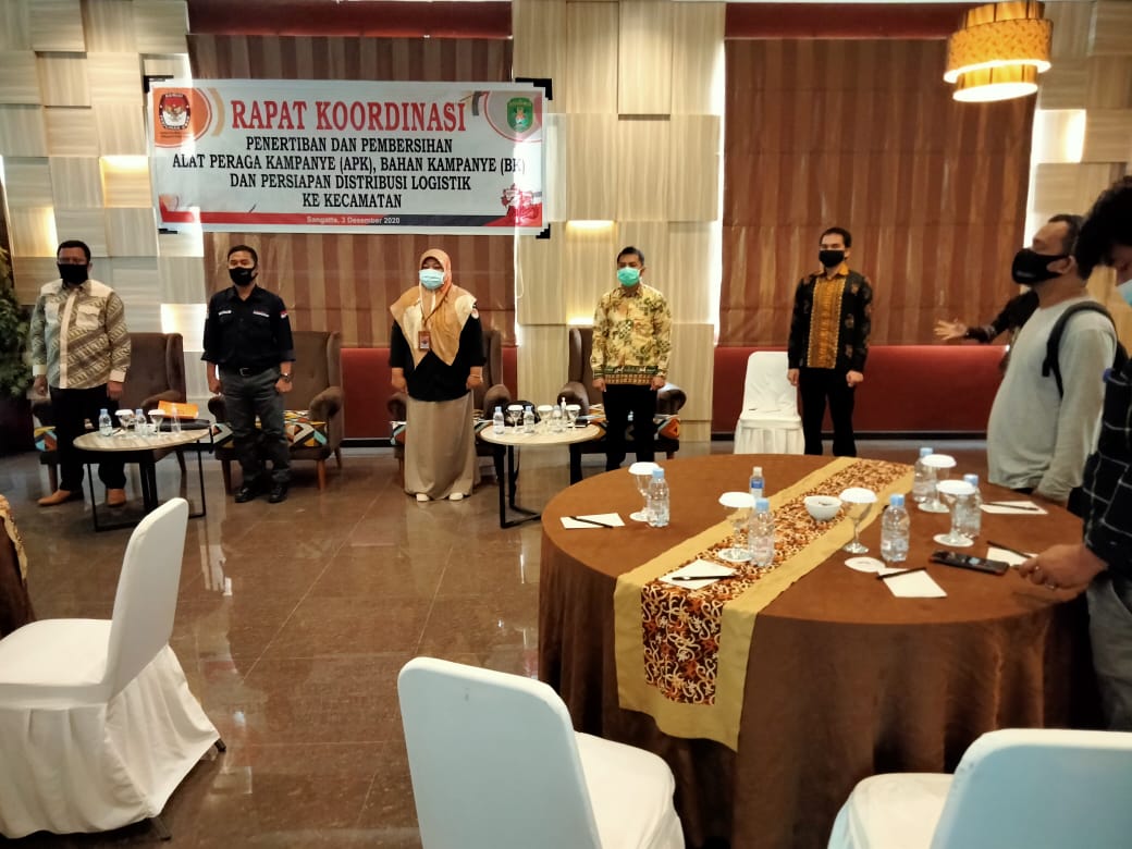 HARIANKUTIM.COM, Sangatta – Komisi Pemilihan Umum (KPU) Kabupaten Kutai Timur melaksanakan Rapat Koordinasi (rakor) penertiban Alat Peraga Kampanye (APK), pembersihan alat peraga kampanye (APK), Bahan Kampanye (BK) dan persiapan distribusi logistik ke kecamatan.di Hotel Royal Victoria Sangatta, Kamis (03/12).