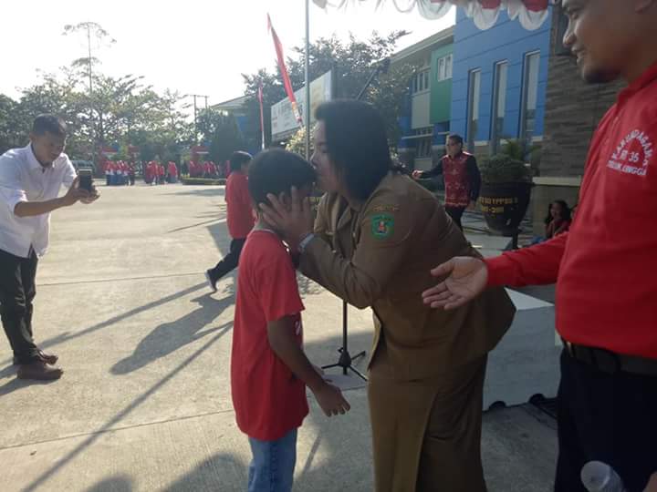 “Mungkin diantara kalian nanti ada yang jadi Bupati dan ada yang menjadi Kapolda. Untuk itu, harus rajin rajin belajar. Ketika menyanyikan lagu Indonesia Raya posisi badan harus dalam kondisi siap sedia dan tidak bergurau dengan sesama teman,” ujarnya.