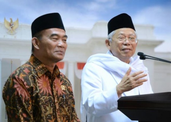 Sementara Muhadjir hanya berdiri mendampingi Ma’ruf dan tak mengeluarkan pernyataan apapun.