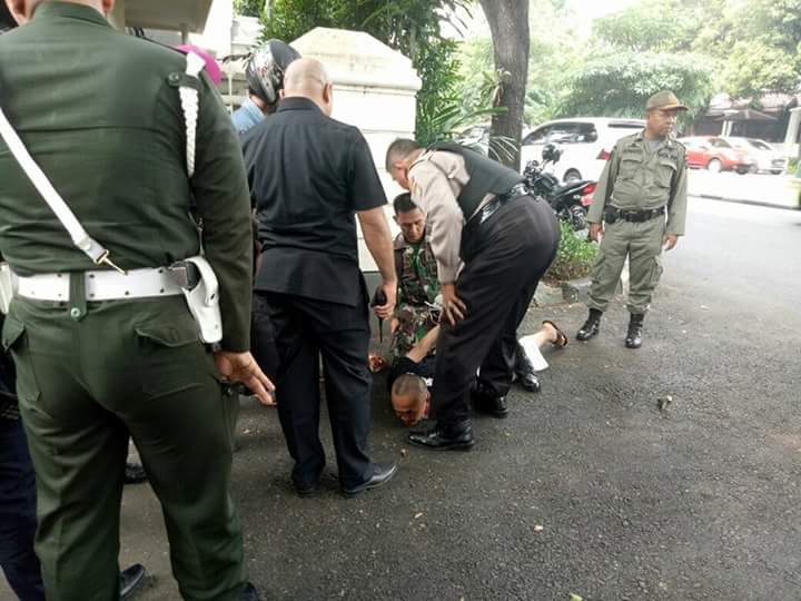 Pria berkaos Front Pembela Islam yang ditangkap petugas kepolisian di depan rumah dinas Panglima TNI, Jenderal TNI Gatot Nurmantyo, diduga mengalami gangguan jiwa.