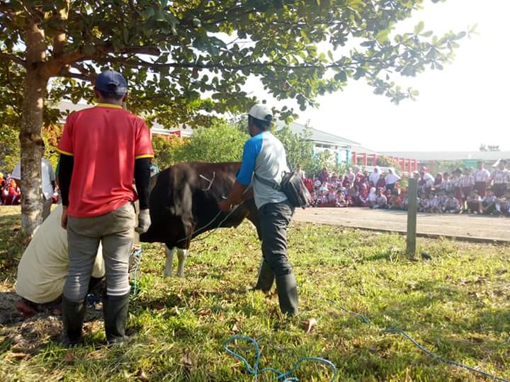 “Dana terkumpul dari siswa-siswi muslim sebanyak 472 siswa dengan membayar rp78.000, sisanya dana dari komite sehingga mendapat 2 ekor sapi,” katanya.