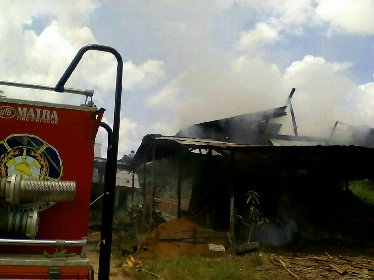 Untungnya kantor Damkar dekat dengan rumah pak Asmuni, sehingga tak perlu waktu lama petugas dan mobil pemadam tiba ke tempat kejadian. Ketakutan kami api merembet ke rumah-rumah yang lain, karena tempat produksi ini dekat jalan raya juga dekat pemukiman warga, tambahnya.