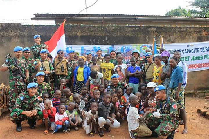 Dalam rangka menyambut Hari Ulang Tahun (HUT) Kemerdekaan Republik Indonesia ke-72 tahun 2017, Pasukan Garuda Satgas Kizi TNI Konga XXXVII-C/Minusca menggelar kegiatan Civil Military Coordination (Cimic) berupa Pengobatan Gratis dan pembagian Baju Batik Khas Indonesia kepada masyarakat lokal di daerah PK 11 Kota Bangui, Republik Afrika Tengah, Jumat (11/8/2017).