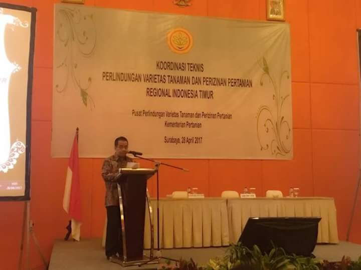 Surabaya – Sekretaris Jenderal (Sekjen) Kementerian Pertanian (Kementan), Hari Priyono, mengingatkan jajaran Pusat Perlindungan Varietas Tanaman dan Perizinan Pertanian (PVTPP) untuk terus meningkatkan kualitas, pengawasan serta harmonisasi regulasi dalam setiap layanan mereka. Hal tersebut disampaikan dalam sambutannya yang diwakili oleh Kepala Pusat PVTPP, Erizal Jamal, dalam acara Koordinasi Teknis Pelindungan Varietas Tanaman dan Perizinan Pertanian Regional Indonesia Timur, di ballroom Santika Premiere Gubeng, Surabaya, Jawa Timur . (28/4/2017)