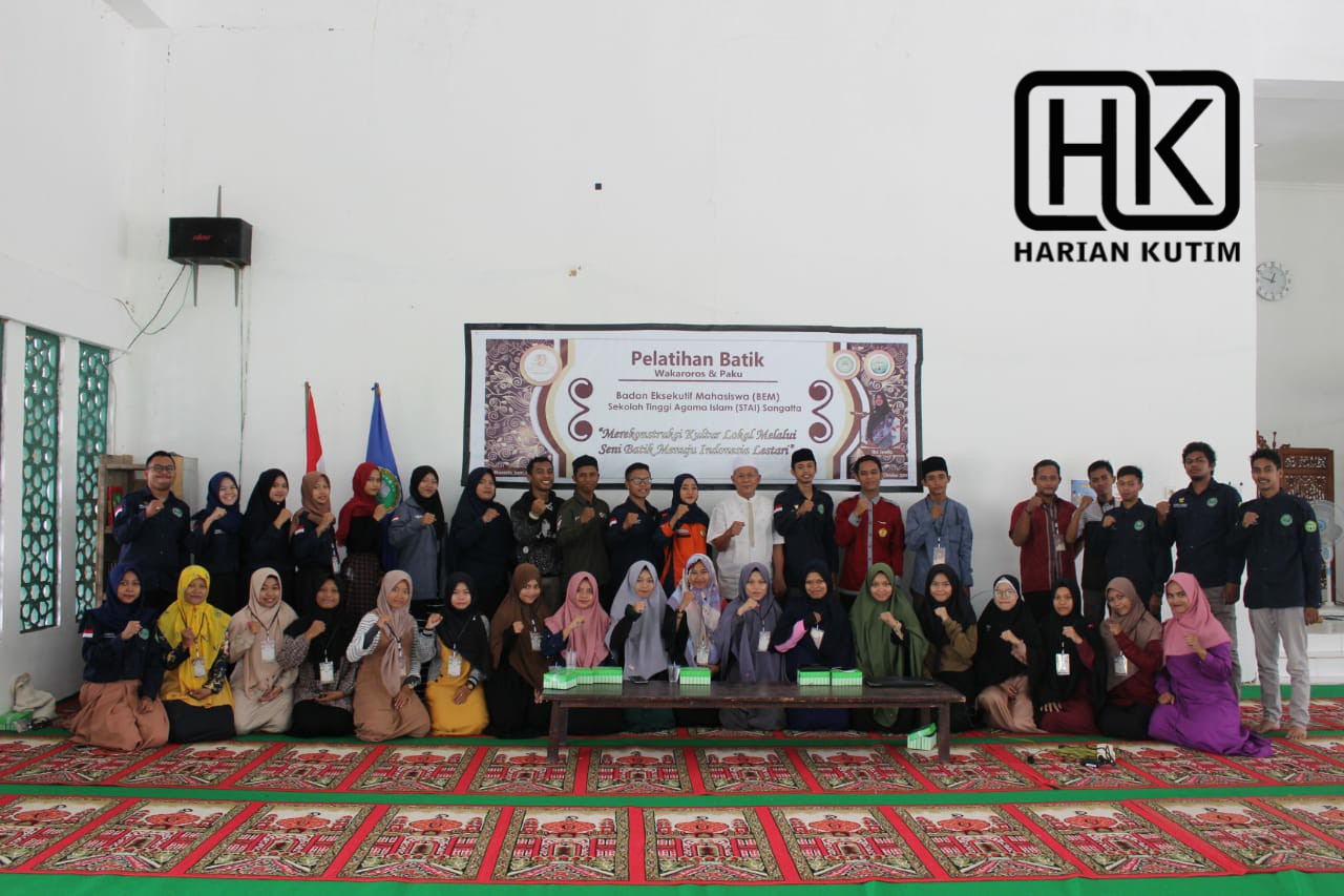 HARIANKUTIM.COM, Sangatta – Badan Eksekutif Mahasiswa (BEM) STAI Sangatta dari Depertemen Pemberdayaan Perempuan Melaksanakan Kegiatan Pelatihan Batik Wakaroros dan paku dalam rangka memperingati hari batik nasional sekaligus mengajak mahasiswa stais untuk lebih mengenal warisan budaya lokal khususnya batik khas Kutai Timur yaitu batik wakaroros. Minggu, 13 Oktober 2019.